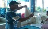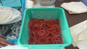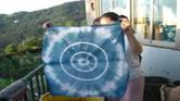 把泡過水的布放進染缸,再拿出,重複幾次與空氣充分接觸才可以氧化。