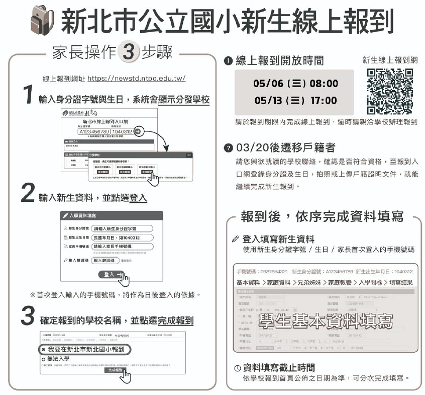 2.線上報到時間:115年5月6日(三)至115年5月13日(三) 線上報到網址:https://esa.ntpc.edu.tw/new/014758