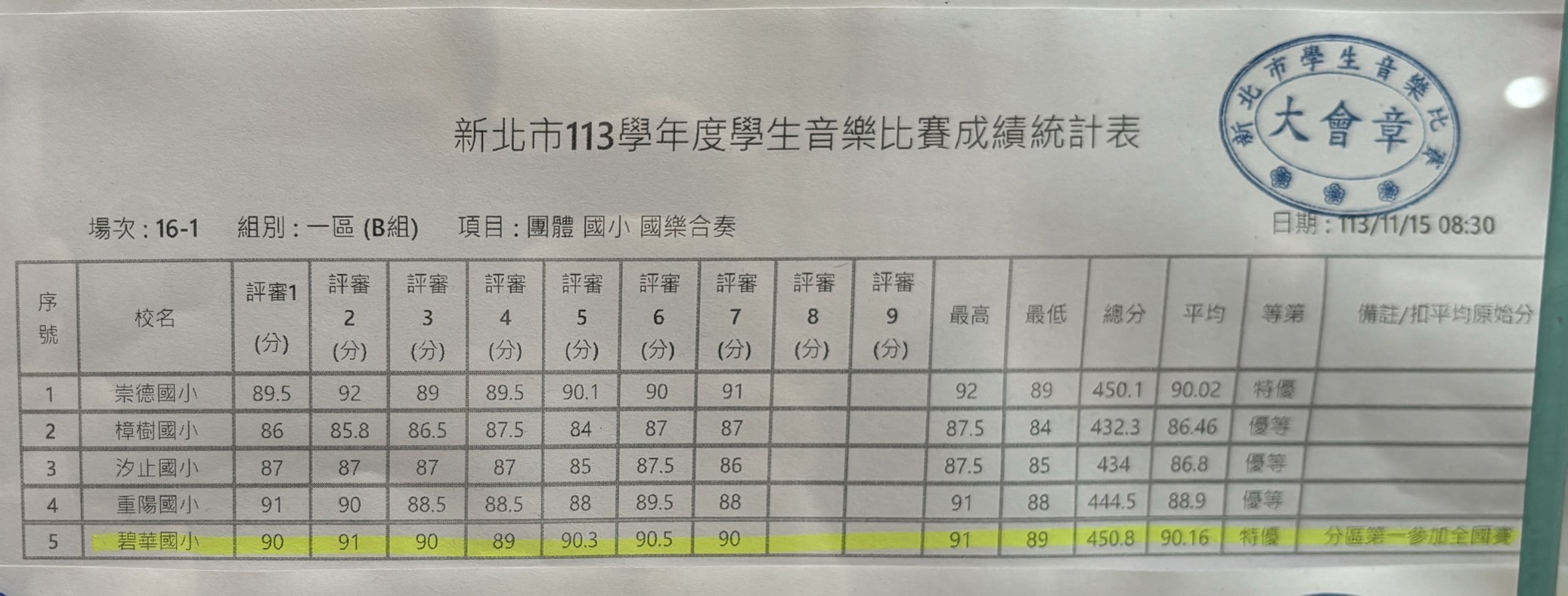 狂賀!本校國樂團參加新北市113學年度學生音樂比賽國小B組國樂合奏(一區)榮獲特優第一,晉級全國賽!